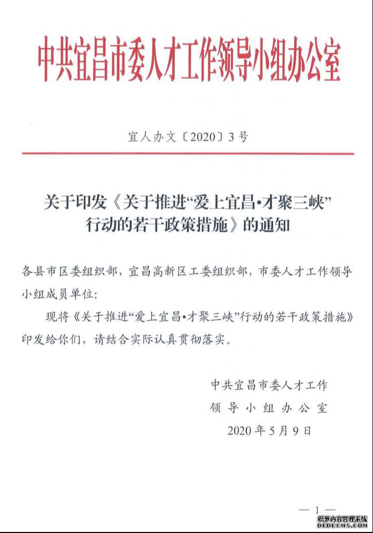 关于印发《关于推进“爱上宜昌·才聚三峡”行动